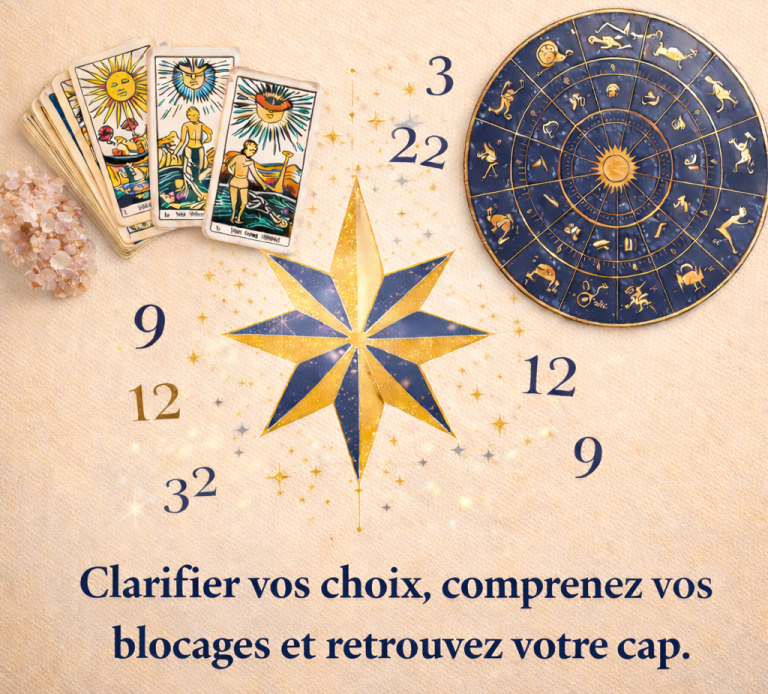 Consultations en numérologie et en astrologie, pour éclairer votre personnalité, votre dynamique et les grands cycles qui vous traversent.